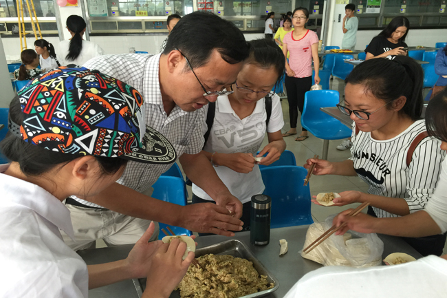 2.会计学院党总支书记闾维健和师生一起包饺子