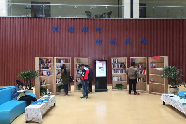 我们相信,诚信书吧的设立不但为同学们提供了一个文化氛围良好的阅读环境和一个以书会友的平台,更体现了节约环保的理念,进一步培养了大学生诚实守信的品质。(图书馆供稿)