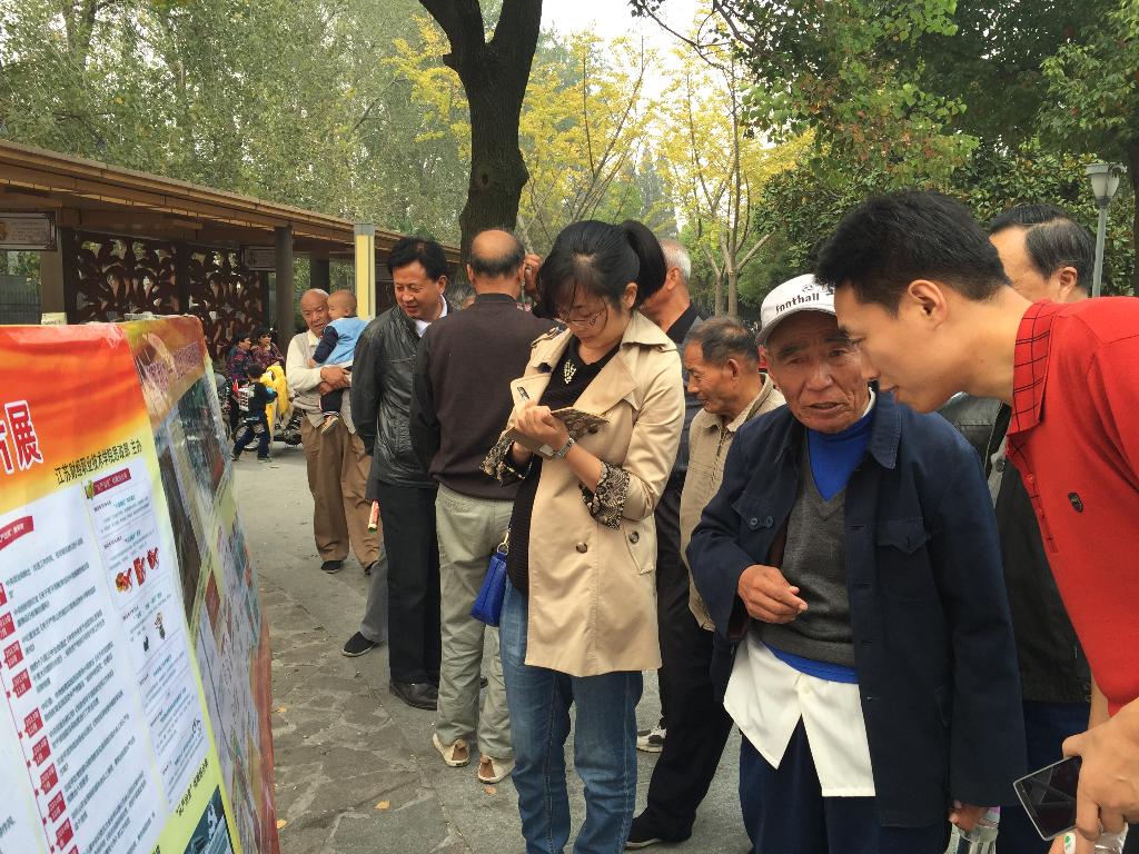 校外展览期间,夕阳红文化广场的群众人数多,年龄偏向中老年,大家对展板的内容很感兴趣。展板刚一摆开,就吸引了很多群众观看。而且大家普遍看的非常认真,对于图片上不认识的字还会主动询问组织方的老师,并和老师同学们一起交流探讨展览内容。很多老同志特别关注“全面依法治国”和“全面从严治党”,看到被打掉的那些“老虎”和“苍蝇”,用一位老奶奶的话说:“心里倒多舒服啊!”他们从中看到了中央领导的决心和国家的美好未来。(思政部供稿)