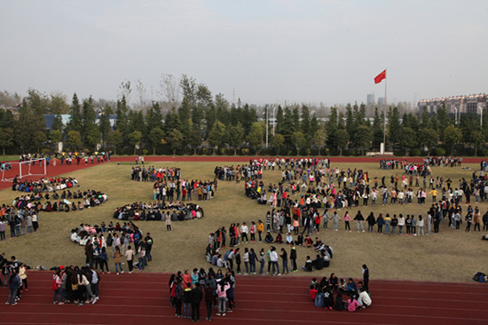 “打开心灵之窗,让心灵洒满阳光”、“心之所愿,无所不成”活动在一声声响亮的团队秀口号声中拉开序幕。本次活动主要有团队秀、互助圈、大家一起来和心有千千结这四个项目组成。团队秀环节,各个团队都尽力展现自身特色和优势,气势如虹,声势浩大,东操场很快就沸腾起来了。尤其是15会计26班,他们班的班级宗旨定位为“团结第一”,所以大家参加活动的积极性很高,在队形上将方队的外圈用心形表示,里面由男生组成一个“帅”字,班长用话筒高喊:“我们班是用帅字贯穿一生,26,26,我们最6,若你不信,solo 26.”他们队形整齐、设计新颖,赢得了老师和同学们的阵阵掌声。