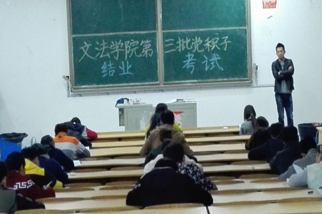 11月1日晚7点,文法学院在JE302教室进行了第三批党积子结业考试,文法学院分团委副书记郁翼及分团委各部门人员参与了本次考试试卷的分发和监督工作。