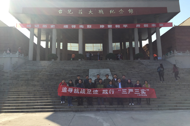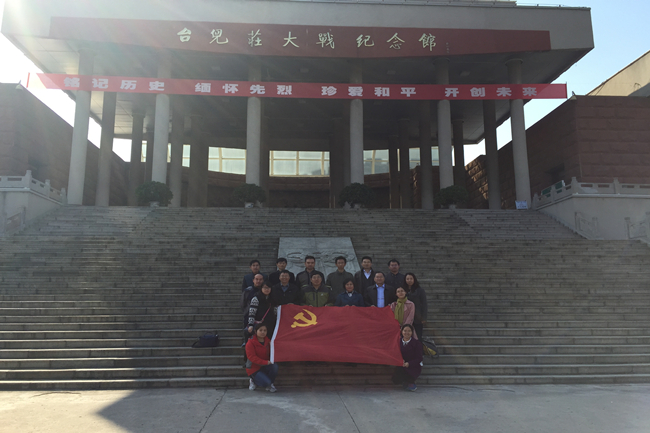 为纪念中国人民抗日战争和世界反法西斯战争胜利70周年,扎实推进“三严三实”专题教育深入开展,10月31日,工商管理学院党总支组织全体党员教师赴山东枣庄开展“追寻抗战足迹,践行‘三严三实’”主题党日活动。