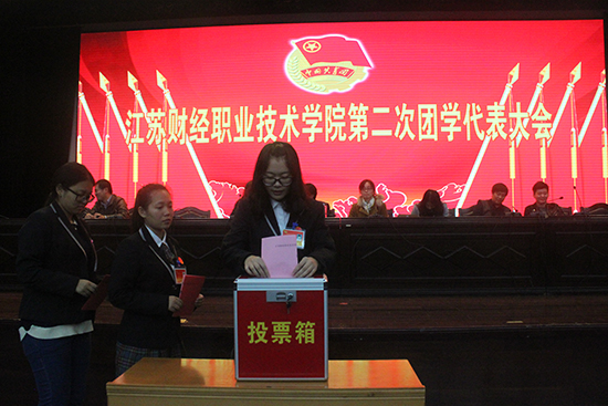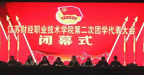 选举结束后,大会举行了闭幕式,通过了朱绍勇同志代表共青团江苏财经职业技术学院第一届委员会向大会所作的《高举旗帜跟党走奋斗青春更出彩》工作报告的决议和杨儒菁同学代表校学生会所作的《团结青年学生 奉献青春力量 为服务广大同学成长成才而努力奋斗》工作报告的决议。大会在嘹亮的团歌声中顺利闭幕。