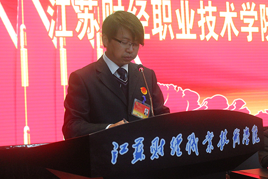朱绍勇书记代表共青团江苏财经职业技术学院第一届委员会向大会作了题为《高举旗帜跟党走 奋斗青春更出彩》的报告。报告指出,本次大会是在学校全面实施“十二五”事业发展规划、全力建设省级示范性高职院攻坚阶段召开的一次十分重要的会议。报告从四个方面总结了第一次团学代表大会以来我校的共青团工作,一是以理想信念教育为核心,以特色主题教育活动为载体,思想政治教育取得新成效;二是以组织育人为保证,坚持“党建带团建,团建抓创新”,团的自身建设实现新突破;三是以文化育人为主体,不断推进校园文化艺术的蓬勃发展,校园文化建设开创新局面;四是以服务育人为根本,拓宽服务领域,团员青年成长成才服务工作有新进展。报告规划了我校未来三年共青团工作,即实施“青春导航”工程,进一步加强理想信念教育;实施“青春灯塔”工程,进一步促进组织制度建设;实施“青春活力”工程,进一步发挥社团育人功效;实施“青春风采”工程,进一步丰富文化育人成果;实施“青春奉献”工程,进一步发挥志愿服务作用。