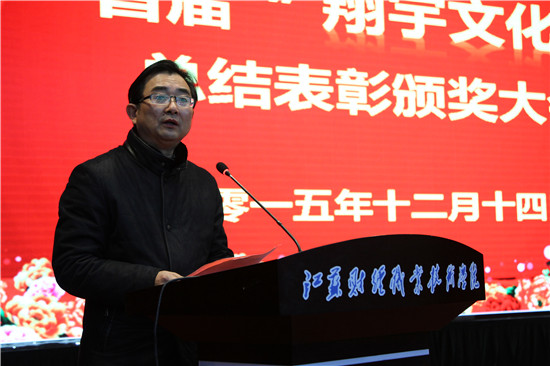 随后程淮中校长发表了热情洋溢的讲话,他高度评价本届翔宇文化节是我校校园文化生活中的一次盛会,精彩纷呈、亮点频现:一是参与人数多、受益人群广。全校各院系、各专业、各年级学生均不同程度参与到文化节中来,使得本届文化节能使最广泛的师生经受锻炼、受到教育。二是活动内容丰富、形式活泼多样。文化节开展了基地建设类、参观座谈类、竞赛活动类、知识讲座类和体验展示类等五大板块16个系列活动,内容涵盖了思政教育、创业创新、心理健康等诸多方面,活动主题鲜明,形式生动活泼。三是活动效果好、社会反响大,真正达到了“弘扬正能量,给力中国梦”的效果。程校长最后号召大家以此次文化节为契机,进一步打造文化育人的新平台,丰富文化育人的新载体,创新文化育人的新模式,励精图治,再续辉煌!