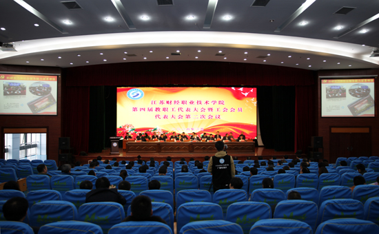 下午5时,大会举行第二次全体会议,通过关于学校工作报告的决议、关于学校工会工作报告的决议、关于学校财务工作报告的决议、关于学校工会经费使用情况报告的决议、关于学校提案工作报告的决议、《关于强化岗位聘任深化绩效工资改革的原则意见》的决议和《江苏财经职业技术学院十三五事业发展规划》的决议。