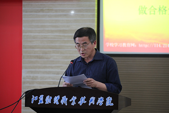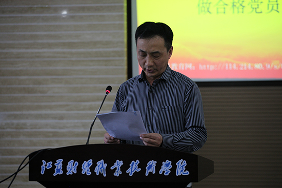 在会上传达随后,学校党委韩香云书记作了动员部署讲话。韩书记指出,学习教育动员大会的主要任务是认真学习贯彻中央、省、市“两学一做”学习教育动员会议精神,对我校“两学一做”学习教育作出全面安排部署,动员学校各级党组织和广大党员以饱满的热情、端正的态度、良好的作风积极投身“两学一做”学习教育,以“学”为基础,以“做”为关键,以“改”为牵引,以“促”为目的,营造想干事、干实事、求实效、促发展的浓厚氛围,凝聚学校改革发展的强大合力,为全面推动学校教育质量提升、实现国内领先、省内同类院校位居前列的高水平特色财经类高职院的发展目标提供坚强的思想、政治和组织保证。