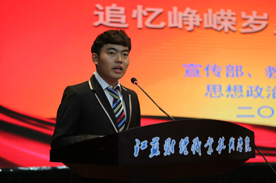来自翔宇社的会计学院15级学生徐长猛作为学生代表向全校同学发出了倡议:一是用责任感召行动,用理想点亮青春,创先争优我做先锋;二是用诚信坚守承诺,用品德陶冶情操,传承文明我做先锋;三是用学习夯实基础,用实践砥砺品质,追求真知我做先锋。