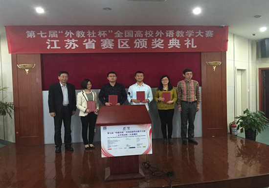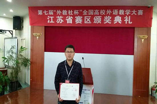 5月29日,第七届“外教社杯”全国外语教学大赛江苏赛区决赛在扬州大学落下帷幕,我校冯伟老师凭借标准流利的英语口语,过硬的教学基本功和敏捷的临场应变能力,一举夺得大赛第一名。这也是继他2011年获第二届大赛省赛第一名和国赛第七名之后取得的又一佳绩。