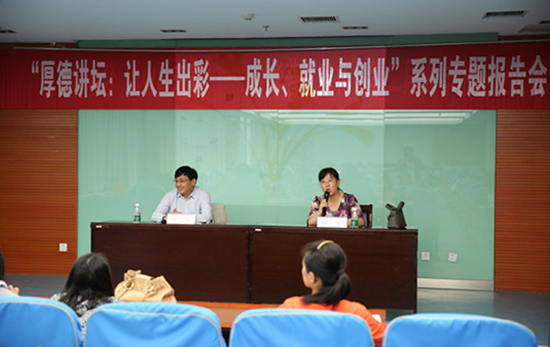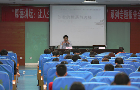5月27日下午2点,第二届翔宇文化节“厚德讲坛:让人生出彩——成长、就业与创业”系列专题报告会之一——创业指导主题报告会,在我校图书馆200人报告厅举行。淮安市创业指导中心副主任王岩应邀作了“创业的机遇与选择”专题报告会,就业与创业指导教研室全体老师及来自各二级院系的200余名学生代表参加了活动。本次报告会由思政部主任邹瑄主持。