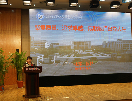 大会还听取了淮阴师范学院教师发展中心胡元林主任关于联盟筹备工作的报告、审议了《淮安市大中专院校教师教学发展联盟章程》(草案)、审议了联盟理事会建议名单,杜萍副校长当选为副理事长,王丹、解瑞卿当选为理事。随后,作为典型杜校长代表我校向大会作了《聚焦质量、追求卓越、成就教师出彩人生》的交流报告,对我校教师发展中心的成立、运行及发展思考作了详细解读,受到与会人员的一致好评。
