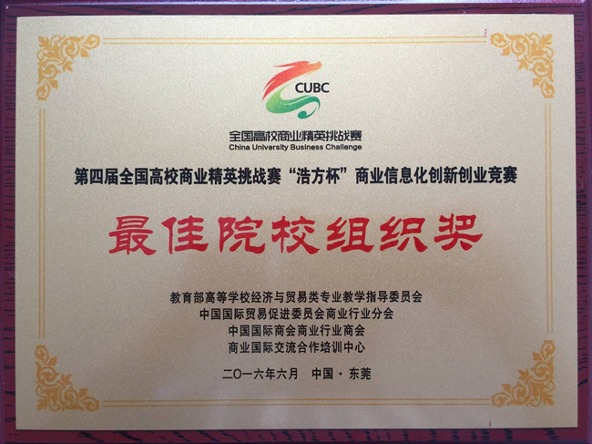 6月7日,由教育部高校经济与贸易类专业教学指导委员会、中国国际贸易促进委员会商业行业分会、中国国际商会商业行业商会和(国资委)商业国际交流合作培训中心联合主办的第四届全国高校商业精英挑战赛“浩方杯”商业信息化创新创业竞赛全国总决赛在广州省东莞市落下帷幕。我校学生处积极组织,精心准备,共打造推荐2个项目参加此次总决赛,其中推荐的“现代互联网零售”项目获得大赛一等奖,推荐的“我乐3D网络购物城”项目获得大赛三等奖,项目两名指导老师荣获优秀指导教师奖,我校被授予最佳院校组织奖。