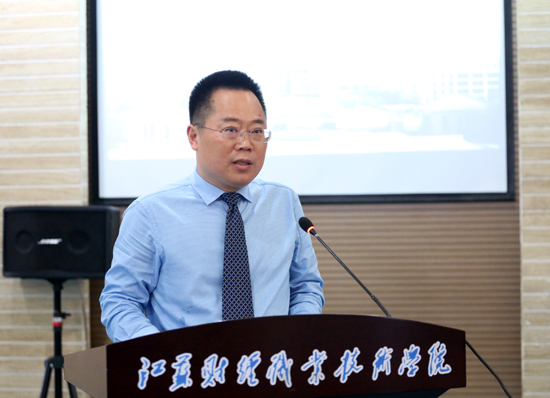 验收组组长、常州大学原党委书记史国栋代表专家组进行了意见反馈,从六个方面充分肯定了我校在省示范院校建设期间取得的成效。一是高度重视省示范创建工作,高质量完成建设任务;二是注重体制机制创新,探索多元耦合的校企合作模式;三是优化人才专业培养模式,示范专业建设成效显著;四是实施多措并举,师资队伍建设取得突破;五是打造社会服务品牌,服务能力全面提升;六是打造特色校园文化,构建人人出彩素质教育体系。专家组一致认为,江苏财经职业学院完成了省示范院校建设项目各项任务,尤其在构建多元耦合、校企共赢的合作发展机制,打造价值引领、文化育人的人才培养特色等方面成效显著,成为省级示范建设的突出亮点,一致同意通过验收。