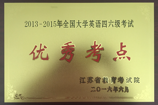 6月2日,江苏省教育考试院下发《省教育考试院关于表彰2013-2015年度全国大学英语四六级考试优秀考点和优秀考务工作者的通知》(苏教考社【2016】14号),对2013-2015年度全国大学英语四六级考试工作进行表彰。在省内所有考点中,我校被授予江苏省“2013-2015年度全国大学英语四六级考试优秀考点”。
