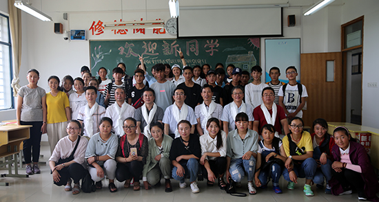 9月4日下午4时,学校文汇楼303教室里热闹而温馨,我校首个西藏班16级会计15班班会在这里举行。在全班热烈的掌声中,热情淳朴的西藏学生和家长向校领导献上了洁白的哈达,并合影留念。