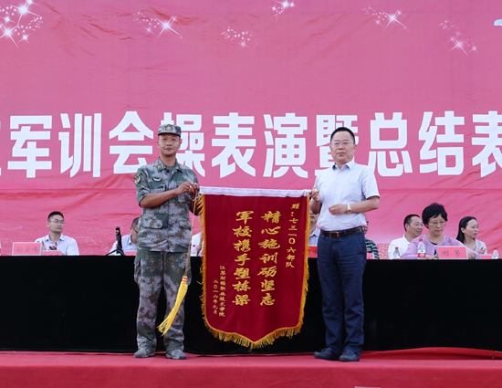 随后,学校党委书记韩香云向73106部队赠送锦旗。学校党委副书记纪委书记刘芳宣读了“优秀教官”和“优秀学员”、“内务整理优胜寝室”、“军事技能优胜班级”的表彰决定,承训部队首长和学校领导分别为获奖的优秀个人和先进集体颁奖。