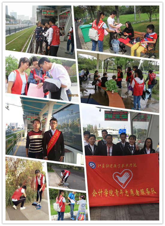“十一”长假,志愿者们牺牲了休息时间,分别前往钵池山公园和有轨电车站台开展志愿服务。钵池山公园的志愿者们有的打扫公园环境卫生,有的为来自五湖四海的游客们指引路线,有的为单独出行的人拍照留念,还有的向游客们进行文明旅游宣传。有轨电车站台的志愿者们则主要负责特殊群体服务、秩序维持、文明乘车等工作。