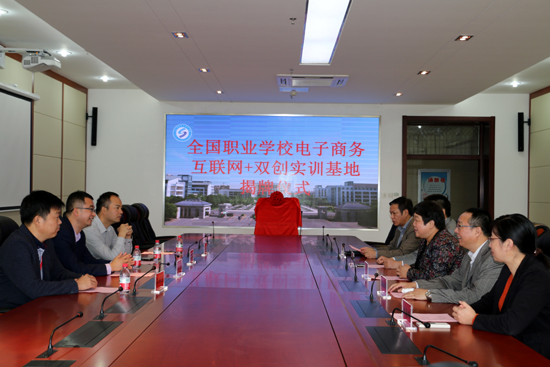 随后,杜萍副校长与刘永家总监共同为全国职业学校电子商务互联网+双创实训基地揭牌。