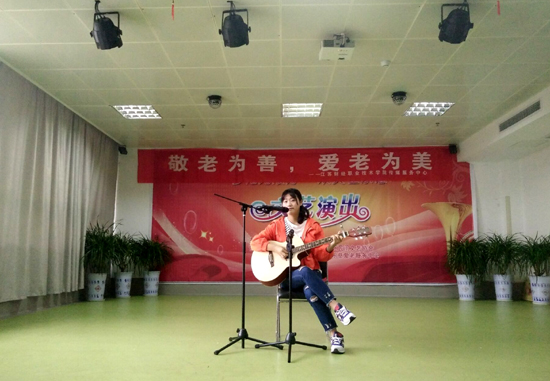 一首动感的广场舞《小苹果》中拉开了节目的帷幕。本次演出形式多样内容丰富,涵盖歌曲,舞蹈,相声和小品等十二个节目。民族舞《在那遥远的地方》、歌曲合唱《小幸运》、诗朗诵《虞姬别霸王》、吉他弹唱《滴答》、火热的舞蹈《bangbangbang》、舞蹈《走进新时代》给颐康院带来了欢声笑语,老人们开心地跟随着音乐节奏一起鼓掌打着节拍。一首《最炫民族风》掀起了全场的小高潮,很多老人不仅跟着哼唱,还跟着一起摆动手臂,脸上露出开心的笑容。