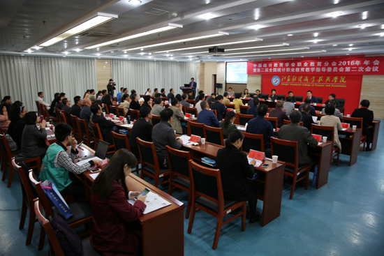 中国统计教育学会职业教育分会会长、全国统计职业教育教学指导委员会副主任委员王志电教授做工作报告。王教授回顾过去一年的九项重大工作,参与了教育部《统计行业人才需求与专业设置指导报告》项目的研究,与相关院校合作,组织学会部分教师进行市场调研,为课题组提供了相关分析资料。在今后的工作设想中,王教授在报告中指出:一要加强自身建设,积极推进自身治理体系和治理现代会能力;二要积极开展学术研究;三要协助全国统计行职委开展各项工作;四要组织学会力量,进一步修订统计技能大赛方案;五要开展国际交流;六要开发“十三五”统计规划教材。