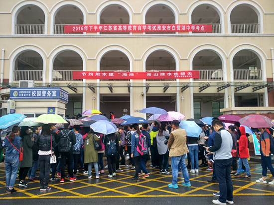 江苏省2016年(下)普通高校自学考试“专接本”考试工作于10月22、23日在淮安市清河实验中学、淮安市白鹭湖中学、淮安市清江浦中学举行。我校共有1976人次顺利参加了自学考试“专接本”全省统一考试。