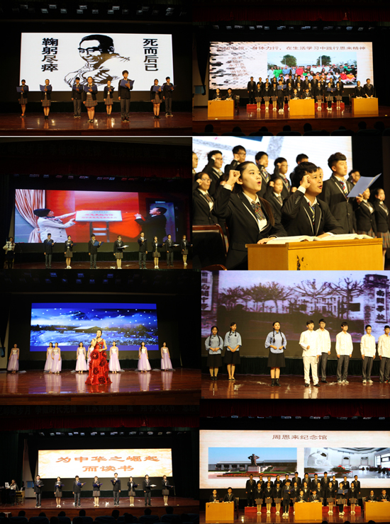 会上,大家通过观看专题短片回顾了第二届翔宇文化节的精彩瞬间,财院学子们还用动人的演出表达了对周恩来总理丰功伟绩的由衷敬仰,以及学习恩来精神、传承翔宇文化的坚定决心。会计学院的同学们带来的诗朗诵《人民的总理——周恩来》让我们领略了总理一心为民的情怀,情景剧《少年周恩来之寻梦》生动地演绎了少年周恩来为寻求救国救民真理而做出的无畏牺牲和不懈努力,“我与伟人有个约会”征文一等奖作品演绎《歌颂周恩来》的配乐诗朗诵,表达了同学们对总理的无限热爱,文法学院2015法务班的同学们表演的《我骄傲,我们是恩来班》则通过一个个生动的事例表达了同学们以实际行动传承恩来精神,歌舞《我像雪花天上来》惟妙惟肖、寓意深刻,将晚会带入了高潮,也为第二届翔宇文化节画上了圆满的句号。