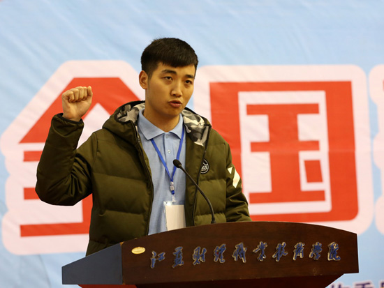 随后,本次大赛裁判员代表遵义职业技术学院实训中心主任喻竹教授、参赛选手代表江苏财经职业技术学院杨家玮同学进行宣誓。