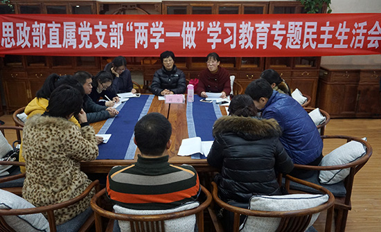 12月21日下午,图书馆六楼古色古香的“翔宇书斋”济济一堂,气氛热烈,思政部直属党支部在此召开了“两学一做”学习教育专题民主生活会。学校党委副书记、纪委书记刘芳到会指导点评,思政部直属党支部书记邹瑄主持会议。