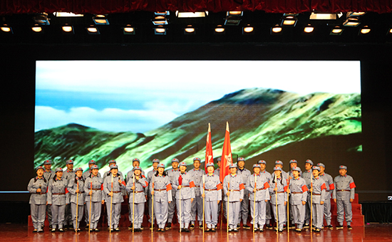 一段岁月,波澜壮阔,刻骨铭心;一种精神,穿越历史,辉映未来!身着红军装的年轻“士兵”气宇轩昂地迈上舞台,基础部分会为大家带来情景剧《长征路上》。台下观众的思绪仿佛瞬间被带到了七十几年前那场波浪壮阔的万里长征之中。