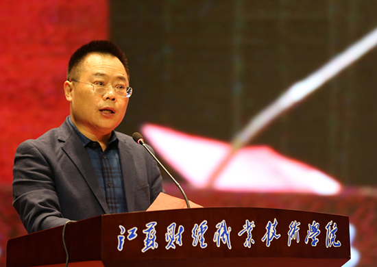 学校党委书记韩香云首先发表新年致辞,他表示:刚刚过去的2016年是学校全面建成高水平特色财经类高职院校的开局之年,也是省级示范校建设圆满完成的收官之年。一年来,学校成功通过省示范验收,入围高职院校创新创业50强,招生人数再创新高,技能大赛勇夺金奖,智慧校园建设全面启动,海峡两岸年会成功举办,成绩来之不易,凝聚着各级领导和广大校友的关心和支持,更包含了全体师生员工的智慧和努力。为此,韩书记代表学校向全体师生员工,向各级领导,广大校友以及社会各界人士致以崇高的敬意和衷心的感谢!韩书记指出,即将到来的2017年,是学校全面创建优质高等职业院校的攻坚之年。机遇与挑战并存,希望与困难同在。2017年我们将以更大的勇气和魄力,更加扎实的作风谱写好“中国梦”的财院新篇章!
