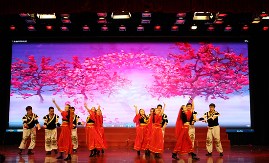 金融学院分会带来的歌舞表演《掀起你的盖头来》,感情丰富,动作柔美,尽展老师们的多才多艺与温馨和谐,一股甜蜜蜜的暖流萦绕着场内每个人的心。