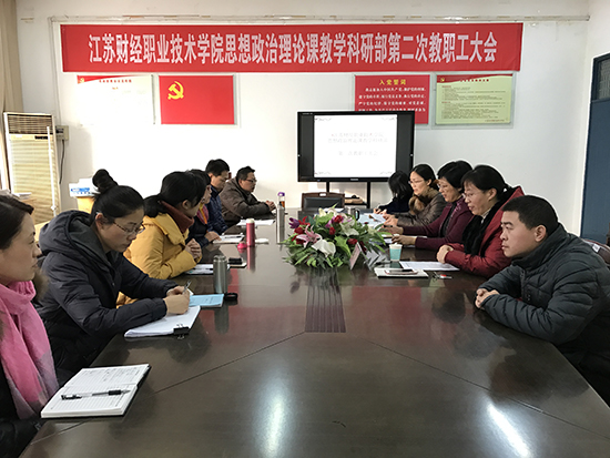 2016年12月29日上午,知行楼107会议室响了起庄严的国歌声,思想政治理论课教学科研部第二次教职工大会胜利召开,思政部直属党支部书记、主任邹瑄及全体教职工参加了会议,会议由思政部分工会主席周导杰同志主持,学校党委副书记、纪委书记刘芳出席会议并作指导讲话。