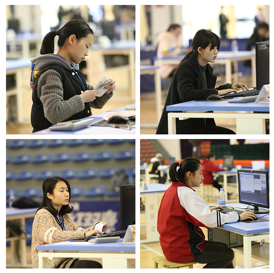 上午8时30分参赛选手登陆柜台业务项目系统开始进行激烈角逐,赛场上,选手沉着应战,二十支参赛队伍奋勇争先,努力拼搏彰显了当代大学生的风采,凸显了紧张的氛围,各级裁判积极履行职责严格监督纪律,十一点的手工技能比赛更是精彩纷呈,点钞,小键盘,传票算,单指单张,多指多张,扇面点钞。