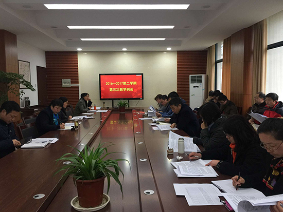 3月20日上午,学校在明德楼112召开教学工作例会。会议由副校长杜萍主持。教务处、科技处、质量管理办公室、校企办、现教中心、学工部和团委等部门负责人以及各二级学院(部)院长、主任参加此次会议。