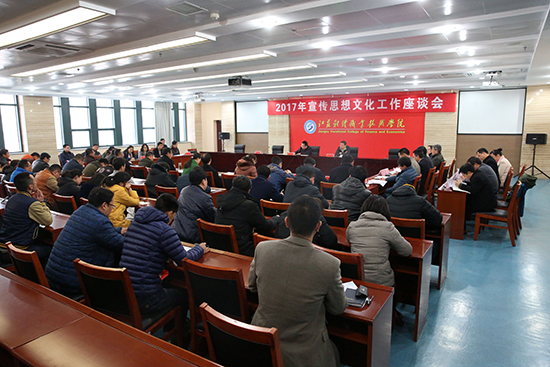 为深入贯彻全国高校思想政治工作会议精神,3月23日下午党委书记韩香云主持召开了学校2017年宣传思想文化工作座谈会。党委委员、副校长戴光顺以及各党总支书记、直属党支部书记、各部门负责人、各党总支(直属党支部)宣传委员,辅导员心理咨询教师代表,党委办公室、党委宣传部、马克思主义学院全体人员参加了座谈。