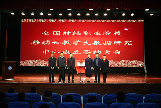 4月5日下午,“全国财经职业院校移动云教学大数据研究中心”签约及揭牌仪式,在我校图书馆报告厅隆重举行。北京蓝墨云教学大数据研究院院长商桑女士,我校党委书记韩香云、校长程淮中,以及校领导班子其他成员、全体中层干部、全体专兼职教师、教务员、辅导员,学生代表,共同参与和见证了中心的成立。