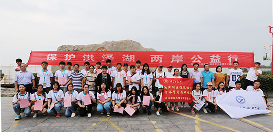 7月8日上午,第二届“飞越海峡——两岸青少年携手公益行”淮安夏令营活动在全国五大淡水湖之一——洪泽湖畔正式拉开帷幕,来自台湾龙华科技大学、河海大学、江苏经贸职业技术学院、江苏财经职业技术学院的40名师生齐聚洪泽湖畔,为保护洪泽湖进行现场倡议宣传。本次活动由江苏经贸职业技术学院和我校共同主办,我校副校长杜萍教授、江苏经贸国际教育学院党总支书记王宏海、我校党委办公室、院长办公室主任王凯、合作交流处、港澳台办公室主任王立强、团委副书记何振华等老师参加了本次活动。