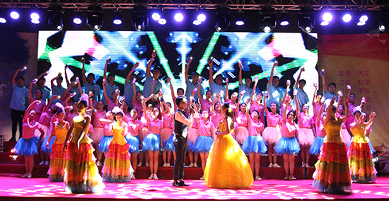 晚会在热闹的开场舞《舞龙舞狮》中拉开帷幕,毛茸茸萌萌哒的狮子引得前排观众忍不住想上前摸一摸,舞动的巨龙在演员的合作下造型变换,后排观众都纷纷举起手机,拍照,录视频。歌舞、朗诵、乐器等精彩的节目为大一新生带来了一场精彩的视觉盛宴。男生群舞《东城诀》,刚毅强劲,号声铿锵。我校今年迎来了来自全国17个省、27个民族的新生,大一新生精心编排了民族舞串烧《百花齐放》,藏族、傣族、蒙古族等少数民族经典舞蹈同台演绎,让现场洋溢着多民族一家亲的温情与热闹,浓浓的异域风情更是赢了台下观众如雷般的阵阵掌声。一曲催人泪下的歌伴舞《时间去哪儿了》,在这中秋来临之际,不知道唱出了多少在外求学学子对家的思念。