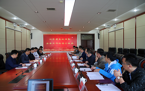 (通讯员 戴礼忠 孟文玉报道)10月13日上午,由江苏省教育厅组织的全省高校后勤安全工作检查组进驻我校,对我校后勤安全工作进行了全面检查评估。我校后勤安全工作汇报会在图书馆第二会议室举行,学校党委书记韩香云、校长程淮中、副校长戴光顺以及总务处、保卫处、后勤服务中心、学工处、办公室、财务处、智慧商科综合实训中心等相关部门负责人参加会议。