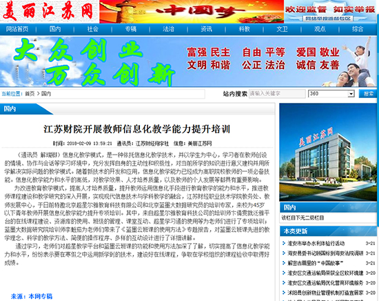 为改进教育教学模式,提高人才培养质量,提升教师运用信息化手段进行教育教学的能力和水平,推进教师课程建设和教学研究的深入开展,实现现代信息技术与学科教学的融合,江苏财经职业技术学院教务处、教师发展中心,于日前特邀北京超星尔雅教育科技有限公司和北京蓝墨大数据研究员的培训专家,来校为45岁以下青年教师开展信息化教学能力提升专项培训。其中,来自超星尔雅教育科技公司的培训师卞倩雯就泛雅平台的在线课程建设、资源库的使用、班级的管理、课堂互动、超星学习通的使用等为老师们进行了专项培训;蓝墨大数据研究院培训师李魁茹为老师们带来了《蓝墨云班课的使用方法》专题报告,对蓝墨云班课先进的教学理念、科学的教学方法、简便的操作程序、多样的互动设计进行了详细讲解。