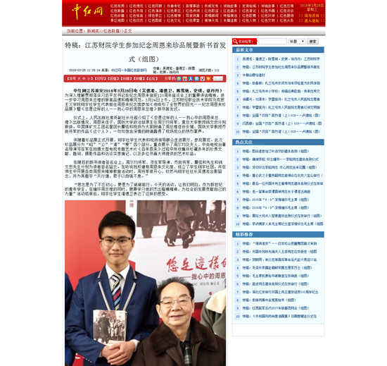 (通讯员:吴德淞 潘德卫 陈雪艳 史琪 徐丹丹)为深入理解贯彻落实习近平总书记在纪念周恩来诞辰120周年座谈会上的重要讲话精神,进一步学习周恩来总理的崇高品德和精神风范。3月24日上午,江苏财经职业技术学院马克思主义学院翔宇社学生代表前往周恩来纪念馆参加《他吸引了全世界的目光——纪念周恩来珍品展》暨《您是这样的人——我心中的周恩来总理》新书首发式。