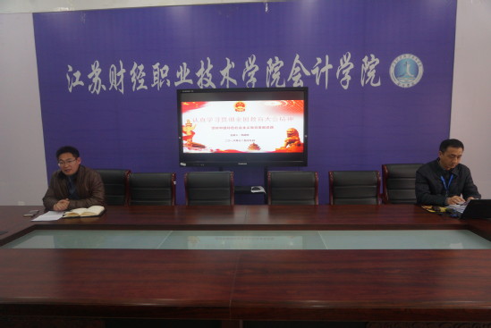 在报告会结束之际,会计学院党总支副书记罗斌作了总结发言,认为郭书记专题报告,高瞻远瞩,观点鲜明,内容丰富,希望大家认真学习和领会,并要求全院教职工会后要认真学习领会习近平总书记重要讲话和学校第三次党代会精神,增强责任感、使命感;要紧紧围绕“立德树人”这一根本任务和“培养什么人、怎样培养人、为谁培养人”这一根本问题,做好学生成长的指导者和引路人,推动学院教育事业再上新台阶,为向更高层次、更高水平、更高质量的特色财经类高职院校大踏步迈进贡献新的力量。