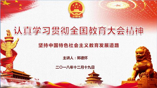 在报告中,郭书记首先介绍了全国教育大会的情况,指出全国教育大会是新时代召开的第一次全国教育大会,在我国教育发展史上具有里程碑意义。接着,郭书记认真解读了习近平总书记在会上的重要讲话精神:一是教育的定位,指出教育是国之大计,党之大计,要紧紧围绕“培养什么人、怎样培养人、为谁培养人”这一根本问题,全面提升中国人民的思想道德素质和科学文化素质。二是要做好“九个坚持”,坚持党对教育事业的全面领导、把立德树人作为根本任务、优先发展教育事业、社会主义办学方向、扎根中国大地办教育、以人民为中心发展教育、深化教育改革创新、把服务中华民族伟大复兴作为教育的重要使命和把教师队伍建设作为基础工作。三是如何培养社会主义建设者和接班人,要坚持和落实习近平总书记强调教育工作六处“下功夫”和三个“要”思想。四是立德树人,构建德智体美劳全面培养的教育体系,做好师资队伍建设。五是教育部门和各级各类学校的党组织要增强“四个意识”、坚定“四个自信”,坚定不移维护党中央权威和集中统一领导,自觉在政治立场、政治方向、政治原则、政治道路上同党中央保持高度一致。