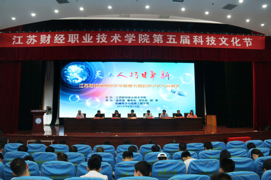 为贯彻落实学校“人人出彩”素质教育体系,为学生成长成才搭建丰富平台,6月12日下午,江苏财经职业技术学院第五届科技文化节开幕式在学校多功能报告厅举行。学校副校长杜萍、学生处处长朱绍勇、团委书记何振华、机械电子与信息工程学院院长蒋道霞、党总支书记刘军、教务处副处长陈振东、工程学院全体教师和学生代表参加开幕式,开幕式由刘军主持。