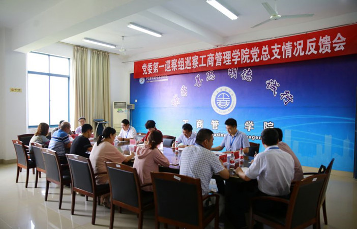 第一巡察组全体成员、工商管理学院全体教职员工参加会议。