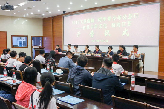 7月2日上午,2019“飞越海峡两岸青少年公益行”活动在江苏经贸职业技术学院开营。台湾圣约翰科技大学、龙华科技大学、元培医事科技大学、万能科技大学的44名师生以及江苏财经职业技术学院、江苏经贸职业技术学院和扬州工业职业技术学院的师生参加仪式。我校副校长杜萍参加开营仪式并介绍了淮安的运河文化及往届活动情况。为期10天的2019“飞越海峡两岸青少年公益行”正式启动。