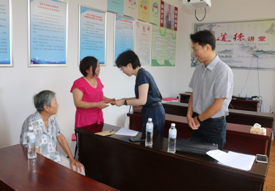 作为我校“不忘初心、牢记使命”主题教育的一项重要内容,9月11日上午,时值中秋佳节来临之际,学校党委副书记嵇芹珍,机关党总支书记、组织部副部长王立强,淮安市基层党建指导员、马克思主义学院副院长程向阳来到淮安市清江浦区闸口街道浦东社区,走访慰问了我校对口帮扶的15个特困家庭和2户就业困难户,与他们亲切交谈,了解家庭情况,并向他们发放慰问金,将党的温暖和关爱送到每一户困难家庭中。