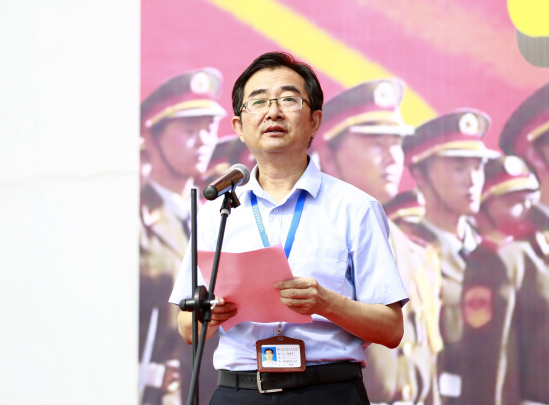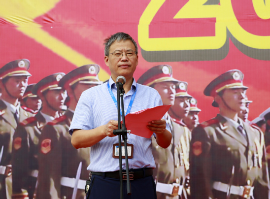 承训部队张俊少校作军训动员讲话,他要求全体训练官兵要认真负责,科学施训,确保质量和安全,高标准的完成这次军训任务,并希望全体参训学生在本次军训中能够筑牢爱国思想根基,强化组织纪律观念,培养令行禁止、雷厉风行的作风,锤炼英勇顽强、吃苦耐劳的品质。
