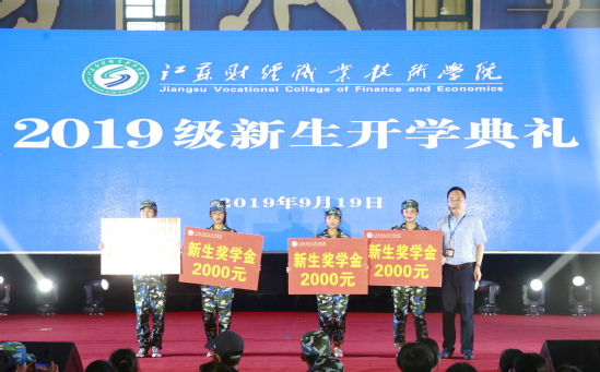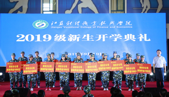 在庄严的国歌声中,2019级新生开学典礼拉开帷幕。典礼上,校党委书记韩香云向19会计(淮工)班孟雅,19会计3班胡肖肖,19会计12班符敏,19法律事务2班黄银霞等4名2019级新生颁发新生奖学金。中国电信股份有限公司淮安分公司党委书记、总经理李海军为次仁央拉等20名2019级新生颁发“中国电信”奖助学金。