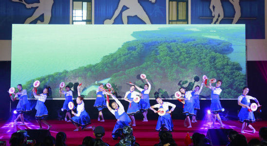 伴随着欢快的节奏和优美的旋律,大学生艺术团带来的舞蹈《洪泽湖渔鼓》散发着浓郁的湖区渔家风情,为现场观众勾勒了一幅迷人的洪泽湖美丽画卷。精彩绝伦的社团表演《绽放青春》各展特色,吉他社、跆拳道、轮滑社等闪亮登场,引得台下欢呼不断。中国新生代乾旦乔迪老师带来的戏曲《梨花颂》、《梦回清江浦》,舞姿妙曼,衣袂飘飘,带领现场观众穿越到过去,领略清江浦的悠久和辉煌历史。惊艳的唱腔与完美的舞台表现,让现场的热闹气氛达到了顶点。空乘班带来的《展翅飞翔》,精彩地向现场观众展示了专业空乘专业服务的端庄仪态,博得台上掌声阵阵。